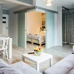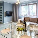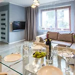 Apartamenty Hotelove Z Sauna Przy Strumieniu lägenhet i Karpacz erbjuder rum med te/kaffebryggare, sitthörna och satellit-TV. Gäster kan använda separat toalett, badkar och dusch.